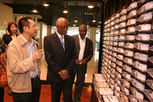 On 19th Oct, some foreign ambassadors who attended “the Fourth Qingdun Culture and Art Festival”and “2009 International Fairs for Economic and Trade”visited our company with the accompany of the leaders. They are Guinea ambassador Mr Mamadl Diare, Libya ambassador Miss Neh Dukuly Tolbert and Sierra Leone ambassador Mr Philip D.kargbo.