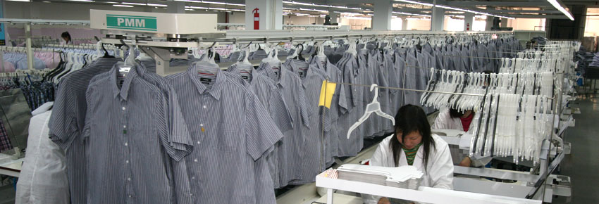 The company is equipped with the most advanced equipment and machines, including 6 Gerber CAD composing and 2 CAM automatic cutting machines from the US, ACP system by Ruike, 9 ETON automatic conveyor lines from Switzerland, 23 automatic buttonholing machines, 10 auto button sewing machines, 23 auto collar forming machines, 8 auto pattern sewing machines, 2 professional pressing lines, 2 professional needle detecting machines, 3 Garment DIPPING durable press lines and over 2600 sets of JUKI sewing machines and equipment from japan.